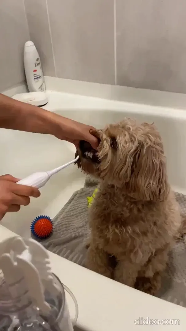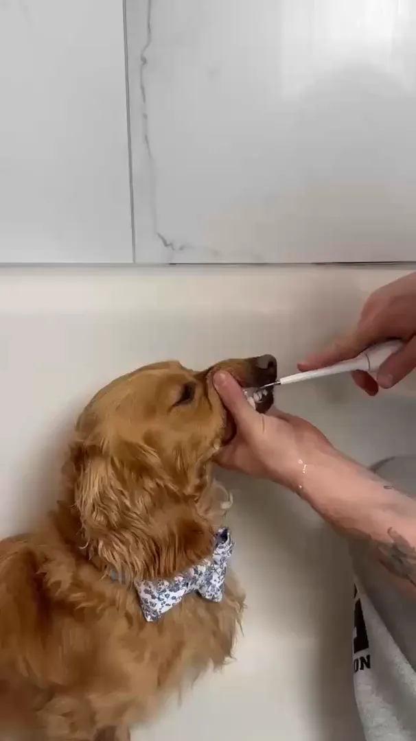 For daily maintenance, run the toothbrush and water-floss tips each evening for about two minutes to remove debris and prevent plaque. Adjust the intensity based on your dog’s comfort.